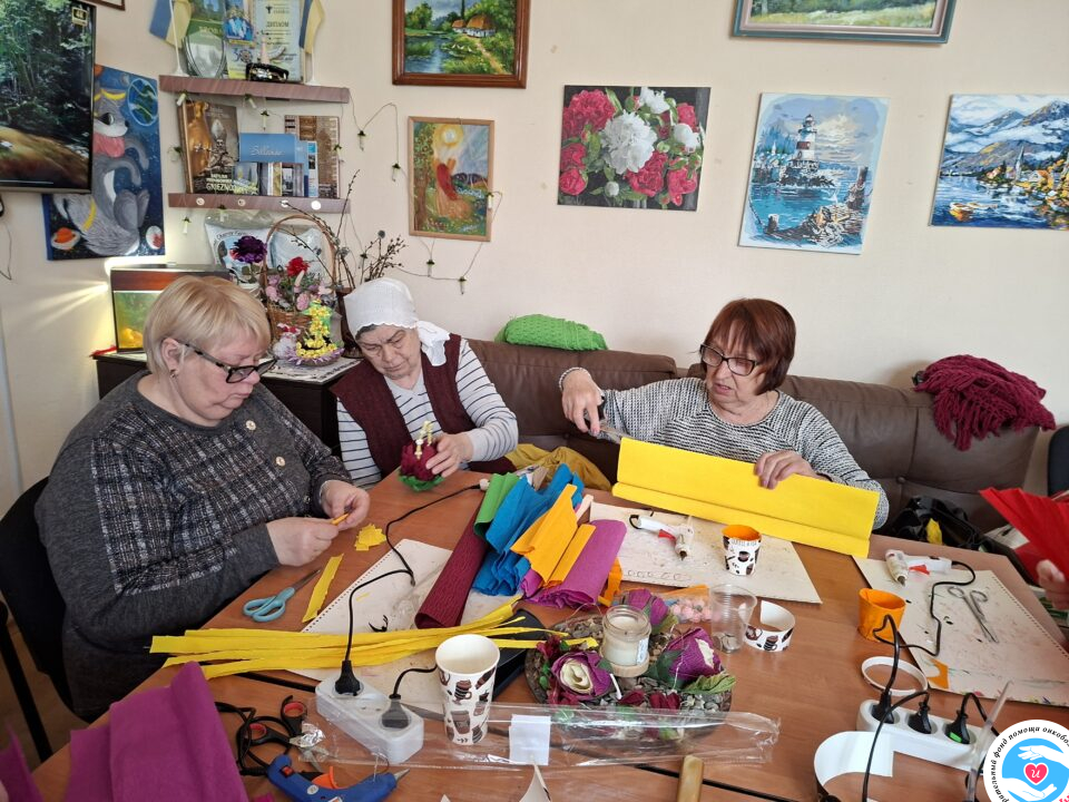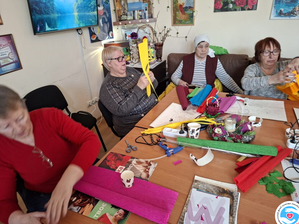 Очередное занятие по арт-терапии с нашими подопечными, которое состоялось в офисе Фонда, хорошо иллюстрирует пример, как из очень простых материалов изготовить вполне достойный подарок для друзей. В данном случае, сувенирную корзинку для конфет или других сладостей.