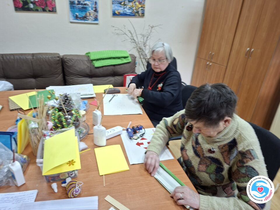 Мы продолжаем готовиться к зимним праздникам. На очередном занятии по арт-терапии, которое состоялось сегодня, в офисе Фонда под руководством Людмилы Магуры подопечные Фонда изготавливали оригинальные новогодние открытки и игрушки на елку.