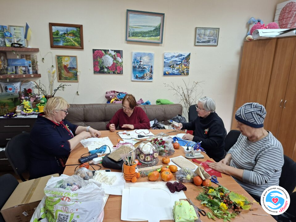 Под руководством руководителя Фонда Людмилы Магуры подопечные организации изготовляли прекрасный подарочный сувенир — осенний зонтик. Конечно, основой такой композиции стал природный материал. Кроме того, в работе использовались клей, картон, ткань.