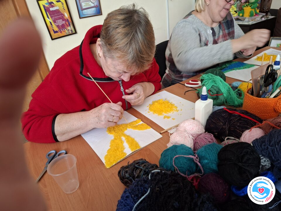 На плановом арттерапевтическом занятии, состоявшемся в офисе Фонда под руководством Людмилы Магуры, подопечные нашей благотворительной организации «рисовали», если уместно здесь это слово, картины шерстью. На первом этапе, на лист бумаги наносился эскиз будущей картины. А потом, мелкопорезанные кусочки разноцветной шерсти, при помощи пинцета, наклеивались на уже обозначенные контуры будущего произведения искусства. Работа, конечно, кропотливая, но, действительно, захватывающая!