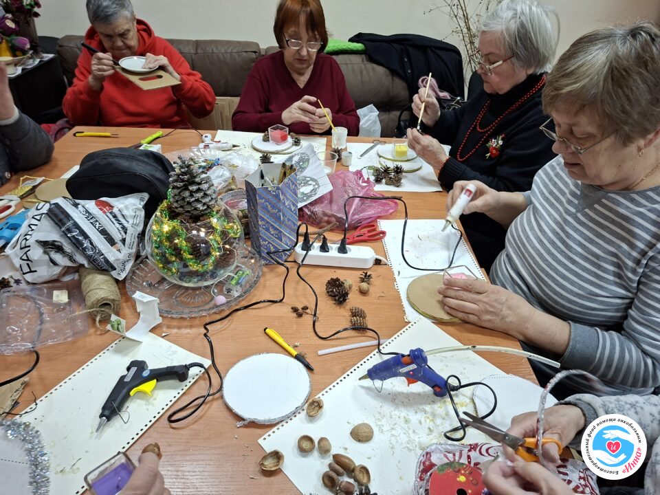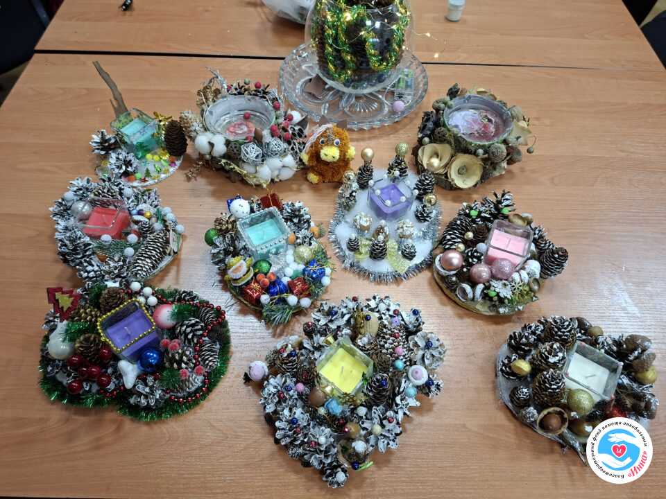 Поэтому, на очередном предновогоднем арттерапевтическом занятии, которое проводила Людмила Магура с подопечными Фонда, занимающиеся своими руками изготавливали новогодние подсвечники.