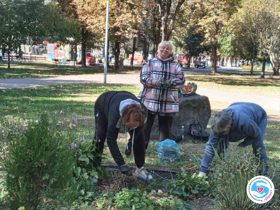 В последние солнечные сентябрьские деньки подопечные благотворительного фонда «Инна» навестили в городском парке «Победа» клумбу, которую сами же и разбили, и за которой ухаживают уже много лет. Такая трудотерапия предусматривается программой «Реабилитация», а такие занятия на природе очень нравятся участникам арттерапевтических мероприятий.