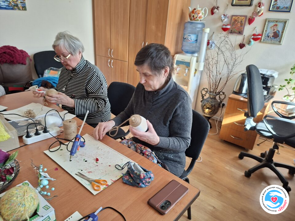 Добре відомо, що поряд із великодніми яйцями, великодні курчата та зайчики (або кролики) є символом родючості та нового життя, як у язичницьких, так і в християнських традиціях. Тому на черговому арттерапевтичному занятті наші майстри власноруч виготовляли великодні сувеніри — зайчиків і курчат.